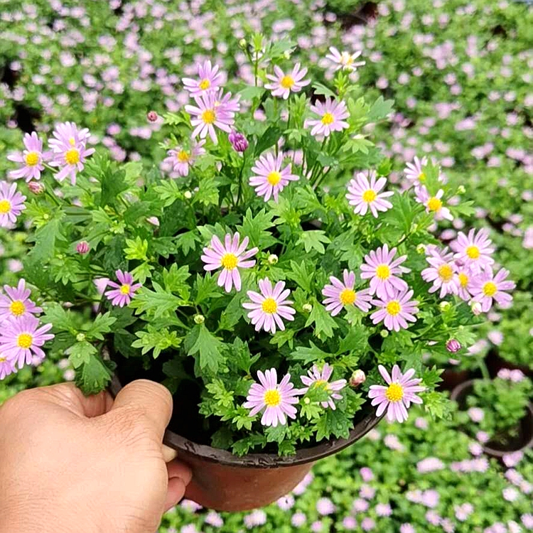 姬小菊是菊科雁河菊属多年生草本植物,有白色、紫色、粉色、玫红色等多种花色,据有较高的观赏价值。喜欢阳光充足的环境,花期长,4-11月,主要花期是春秋两季,是一种比较好养殖的花卉,适宜布置花坛、花境。形态特征:宿根花卉,叶互生,羽裂。头状花序顶生,有白色、紫色、粉色、玫红色等多种花色,花期4-11月,花期长。生长习性:喜光,光照不足易徒长,花量减少。耐寒耐热,能耐30℃左右的高温。对土壤适应性强,无论酸性土壤还是碱性土壤都能保持较好的生长。栽培技术:姬小菊花期长,开花多,需肥量大,薄肥勤施较好,一般十天半个月施一次薄肥。花开败后及时剪掉残花,距根部10-15厘米的地方修剪即可。园林用途:适宜布置花坛、花境。
