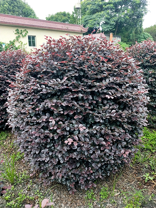 小区的行道树:通过修枝控制,将红花檵木培养为彩叶小乔木,也可通过用白檵木嫁接的方法进行培养,多作为小区行道树使用。此类用途宜选用透骨红类品系。
